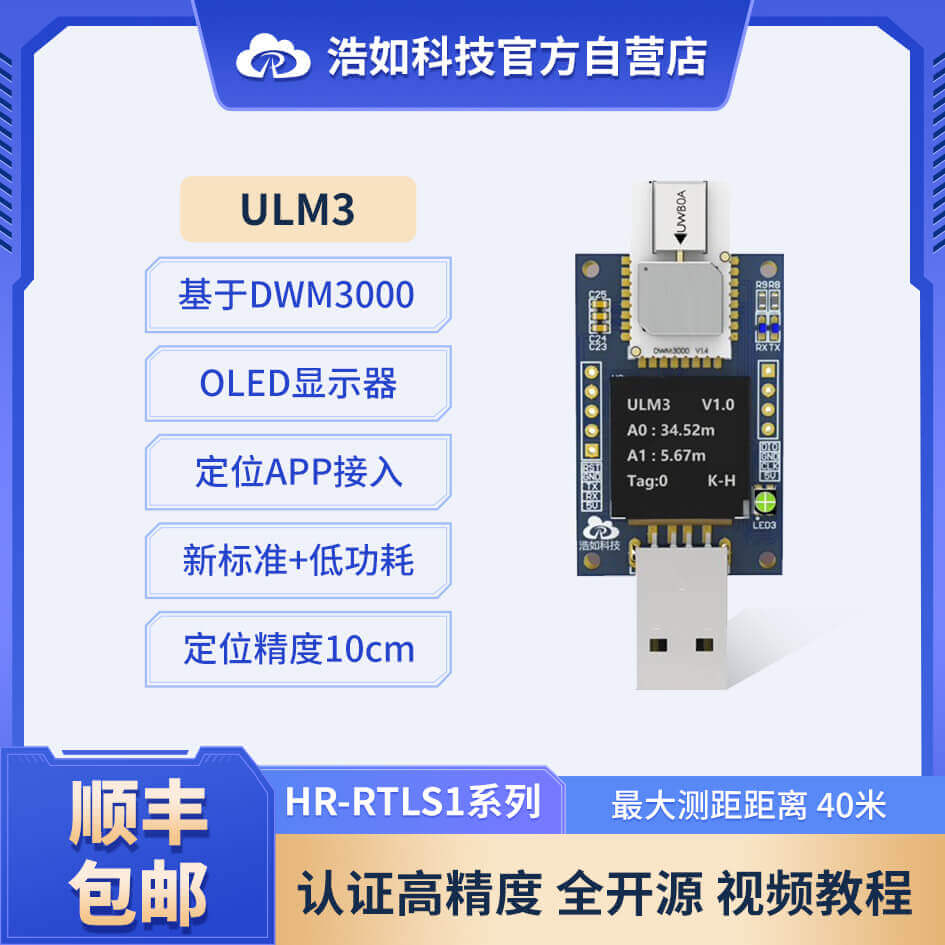 ULM3 模塊是大連浩如科技 HR-RTLS1 系列產(chǎn)品基于最新 DW3000 系列芯 片的短距離定位模塊,采用 DecaWave 官方 DWM3000 作為核心 UWB 模組,采 用 STM32F103CBT6(根據(jù)市元器件價(jià)格浮動(dòng)情況和批次不同或其完全兼容的 GD32F103CBT6)單片機(jī)作為主控 MCU,板載 OLED 顯示器,具有簡(jiǎn)單易用、 高精度、體積小巧等特點(diǎn)。 ULM3 模塊可作為基站或標(biāo)簽使用,多個(gè) ULM3 模塊組合可構(gòu)成完整的定位 系統(tǒng)開發(fā)套件。