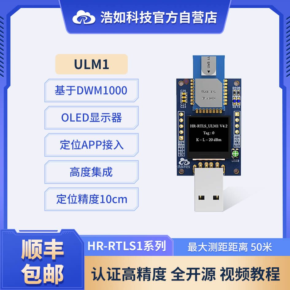ULM1 模塊是大連浩如科技 HR-RTLS1 系列產(chǎn)品中的一款經(jīng)典短距離定位 模塊,采用DecaWave官方DWM1000作為核心UWB模組,采用STM32F103CBT6 (根據(jù)市元器件價格浮動情況和批次不同或其完全兼容的 GD32F103CBT6)單 片機作為主控 MCU,板載 OLED 顯示器,具有簡單易用、高精度、體積小巧等 特點。 ULM1 模塊可作為基站或標簽使用,多個 ULM1 模塊或和其他 HR-RTLS1 系 列模塊(LD150(-I)、LD600(-I)、ULM1-SH、ULM1-GP)搭配,可構(gòu)成完整的定 位系統(tǒng)開發(fā)套件。